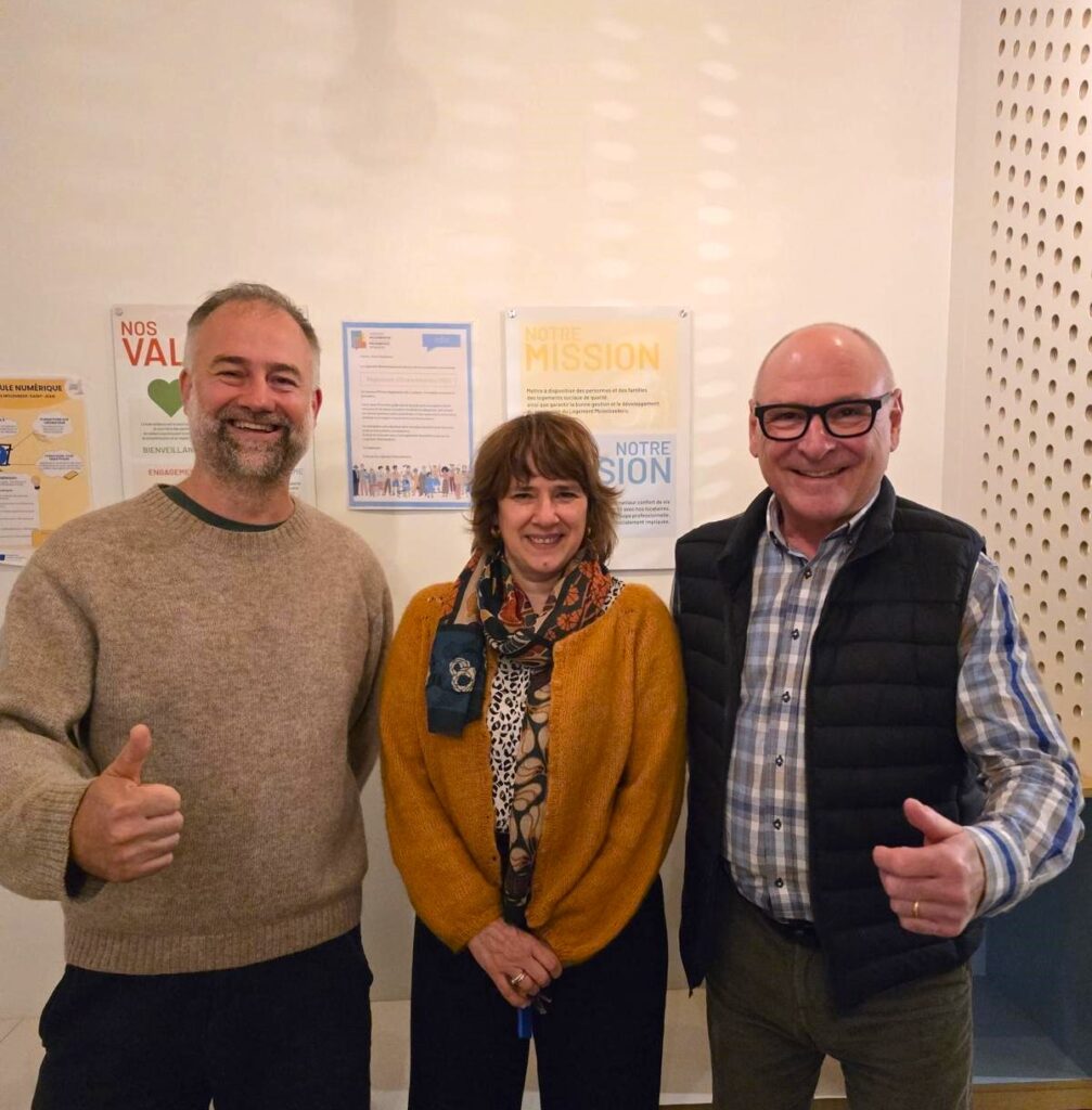 Photo, de gauche à droite : Dirk De Block (échevin du logement, président du Logement Molenbeekois et de la MAIS), Valérie Flahaux (direction Location et Social au Logement Molenbeekois), Frédéric Dufour (directeur général du Logement Molenbeekois).